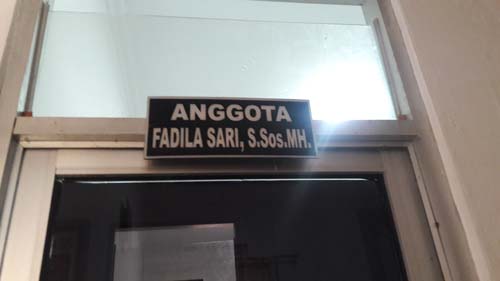 Kami diantar beberapa staf, ke ruang kerja masing-masing. Aku terhenyak, ketika aku diantar ke ruang yang diatasnya ada papan nama bertuliskan: “Fadilasari, S.Sos, M.H”. Eit, itu aku bukan ya. Sejak kapan namaku ada M.H- nya pikirku terheran-heran. Astaga, untung tak ada yang melihat perubahan gelagatku. Katrok amat. Pasti aku dibilang orang dusun, yang ketika ditunjukkan ruang kerja, langsung termehek-mehek. Padahal bukan soal ruang kerja, tapi gelar itu lho. Kok bisa aku sampai lupa, dan pakai terhenyak segala.